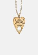 Comes with a gold-tone, nickel-free, stainless steel chained necklace and planchette pendant.