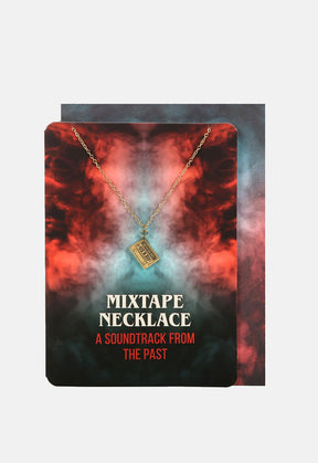 Gold-tone mixtape design necklace celebrates with matching greeting card.