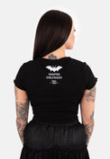 Embroidered bat motif across back